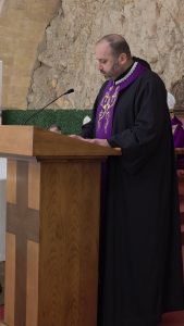 وتابع غاوي كلمته قائلا:” وَفِي هٰذَا الْيَوْمِ الْمُبَارَكِ، نَذْكُرُ بِمَحَبَّةٍ وَصَلَاةٍ جَمِيعَ الْإِخْوَةِ وَالْأَخَوَاتِ الَّذِينَ لَمْ يَتَمَكَّنُوا مِنَ الْحُضُورِ بَيْنَنَا بِسَبَبِ الظُّرُوفِ الصَّعْبَةِ. فَإِنْ غَابُوا عَنَّا بِالْجَسَدِ، فَهُمْ حَاضِرُونَ مَعَنَا بِالرُّوحِ، فِي قُلُوبِنَا وَصَلَوَاتِنَا. نَسْأَلُ الرَّبَّ أَنْ يَحْفَظَهُمْ وَيَحْفَظَ لُبْنَانَ، وَأَنْ يَمْنَحَنَا دَائِمًا أَنْ نَبْقَى عَائِلَةً وَاحِدَةً، يَجْمَعُهَا الرَّجَاءُ وَتُثَبِّتُهَا الصَّلَاةُ.