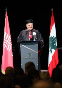 إن تلفزيون لبنان، وMTV، وسائر وسائل الإعلام، وعلى وجه الخصوص الوكالة الوطنية للإعلام وإذاعة لبنان، إلى جانب مختلف وسائل الإعلام العامة والخاصة، جميعها تساهم في جعل اجتماعنا هذا، الذي يضم نحو 600 شخص، يمتدّ تأثيره ليصل إلى ستة آلاف، ثم إلى ستمئة ألف، وربما إلى ستة ملايين شخص، بما في ذلك اللبنانيون غير المقيمين الذين يتابعون هذه المناسبة عبر البث المباشر الليلة.