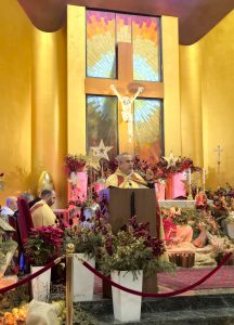 وقال:”كثيرًا ما نحتفل بالأعياد، ولا سيما بعيد الميلاد، وكأننا نحيي ذكرى شخص غائب، من خلال الزينة والضجيج، من دون صلاة أو تقديس أو لقاء حي مع الله. أما هنا، وعلى هذا المذبح، فنحن نحتفل بحضور حي، أمام أعجوبة يتحوّل فيها الخبز إلى جسد المسيح، وكلمة الله تُقال لنا الآن، انه هو أمس واليوم وإلى الأبد”.