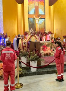ترأس الذبيحة الإلهية الأب ميشال عبود، بمشاركة رئيس رابطة كاريتاس المنتخب الأب سمير غاوي، الرئيس السابق الأب لويس سماحة، منسق جهاز الأقاليم الأب رولان مراد، والمرشد الروحي للرابطة الأب شارل صوايا. خدمت القداس جوقة “كاريتاس”.