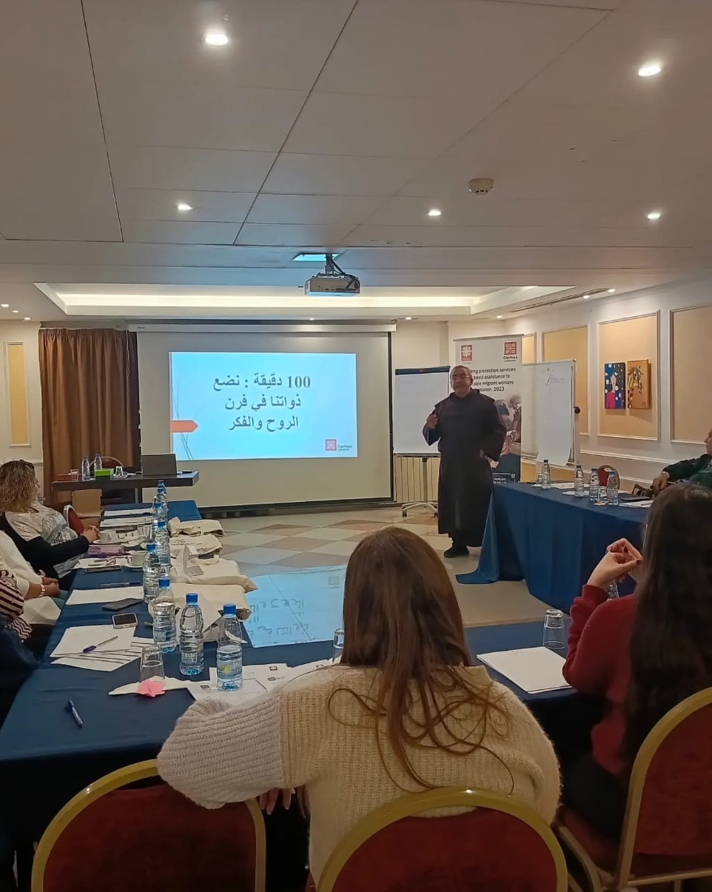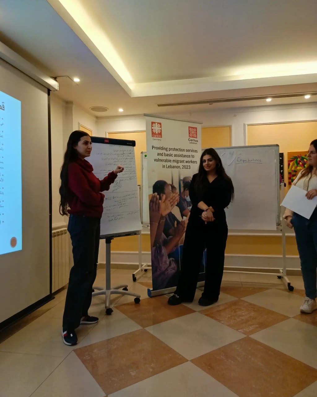 On the occasion of the International Migrants Day,Caritas Lebanon and Caritas Germany organized a 1-day training for two groups working directly with the women’s Migrant domestic workers to enhance their capacities and respond to the needs of the victims of forced labor on the 18th and 19th December 2023 at Padova Hotel.