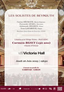 A distinguished concert will take place at the iconic Victoria Hall in Geneva in benefit of Caritas Lebanon. This cultural evening features the renowned “Les Solistes de Beyrouth”, conducted by Fernando Affara, with performances by world-acclaimed artists: