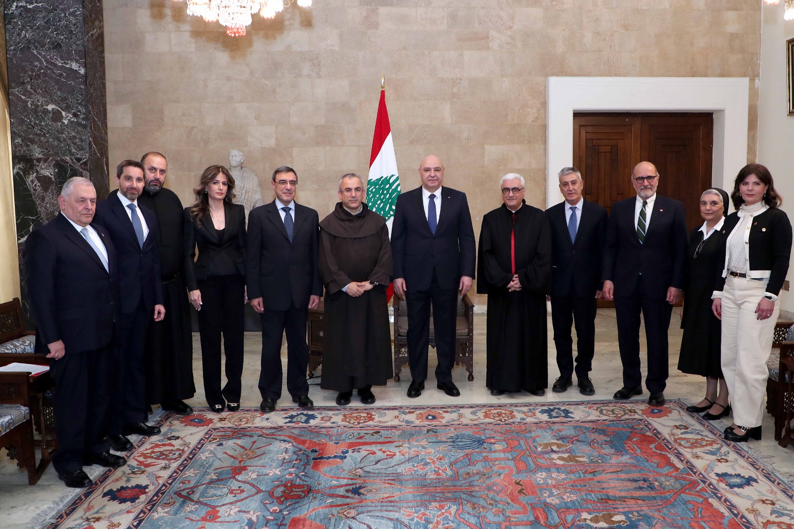 A delegation from Caritas Lebanon, led by Caritas President Father Michel Abboud and in the presence of His Excellency Archbishop of Beirut, Boulos Abdel Sater, visited His Excellency President of the Republic, General Joseph Aoun, at the Baabda Palace to extend their congratulations on his election.