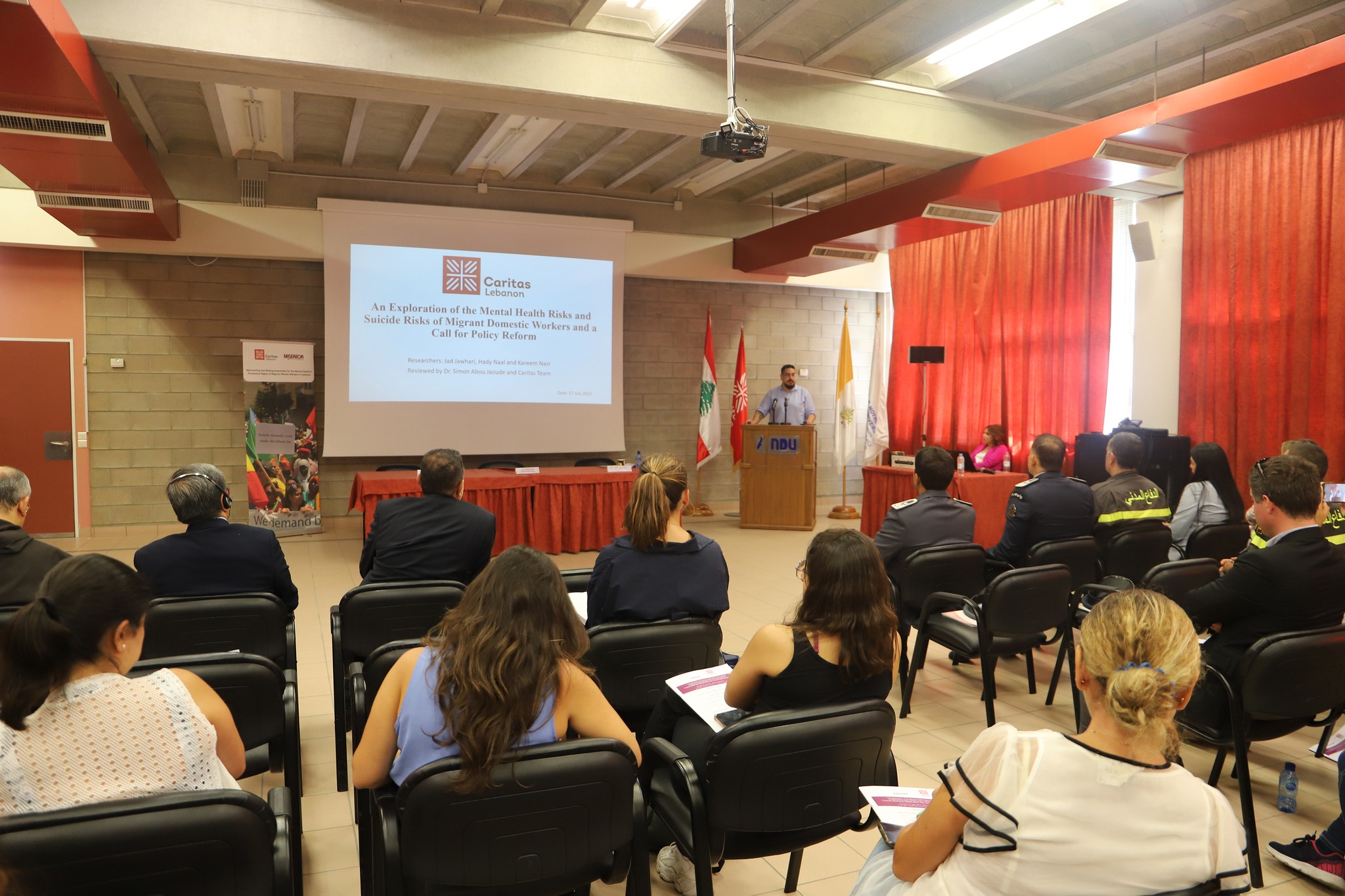 In honor of world day against trafficking in persons, Caritas Lebanon funded by the German Catholic Bishops MISEREOR launched a study under the title “An Exploration of the Mental Health Risks and Suicide Risks of Migrants Workers and a Call for Policy Reform” at Notre Dame University–Louaize.